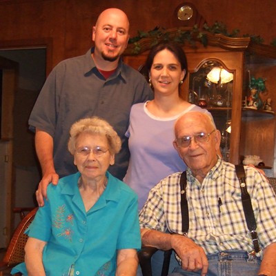 Our boys with their great-grand parents, Lewie and Imogene Thomas.