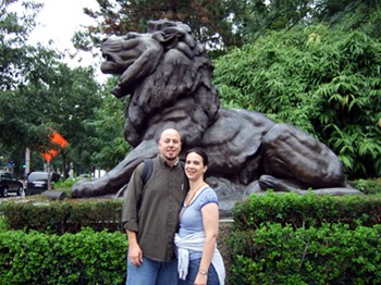 Well, we finally got away from Bethesda today and Metro’ed down to DC to check out the National Zoo. Very nice. We were impressed with the Pandas… but the Amazonia building was the bomb! It’s built around a big aquarium with the scariest-big fish we’ve ever seen along with an astounding array of fresh water Sting Rays. It had a tropical rain forest room and a big science lab with all kinds of microscopes and cool things to look at.