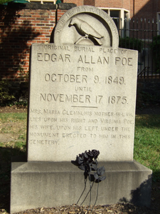 Yesterday, Oct. 7th, was the 158th anniversary of Poe’s death under mysterious circumstances in a city he loved, Baltimore, Maryland. I trekked out from Bethesda and spent an hour at the grave site.