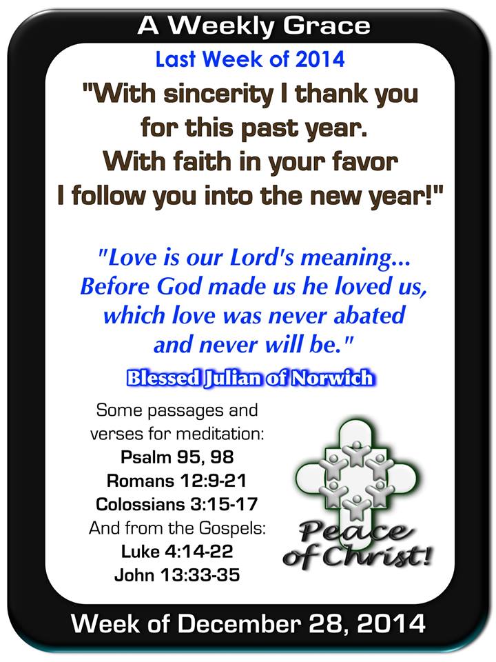 Go into the new year daring to stand in that embrace. Go into 2015 believing in the favor and the love of God. If you need to see, if you need to be freed, this is the what the favor does. If you struggle against a poverty of body, mind or soul, this is what the favor comes to help you with. Jesus is the image of favor offered, not favor earned. Claim it, for it is yours.