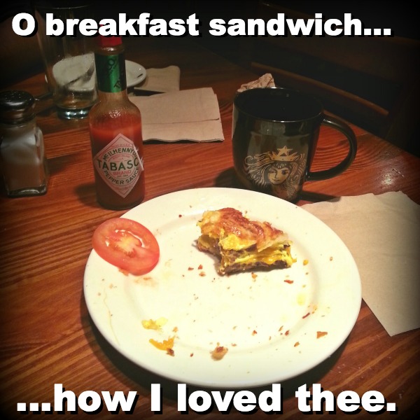It’s such a shame that breakfast is a finite quantity and experience. One moment I was enjoying an absolutely amazing breakfast sandwich here at La Madeleine this morning, and then it was gone. Why wasn’t I taught that breakfast was finite? Why wasn’t I prepared for the consequences of eating?