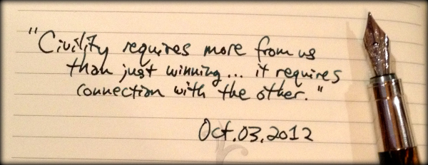 Oct. 3 ~ Civility requires more of us than just winning… it requires connection with the other. #civility