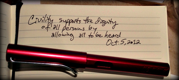 I think civility will be a natural outgrowth of choosing to reveal and support the other person’s value and dignity. It doesn’t mean I have to agree with everyone, but I sure better not value myself over them. I can disagree with someone while still protecting the inherent value of their life, opinions and aspirations. It’s not just that God loves an under dog, God loves to fill gaps of inequity and oppression. Civility, and the humility from which it grows, will create fewer of those gaps by affirming and revealing the value and dignity of others.