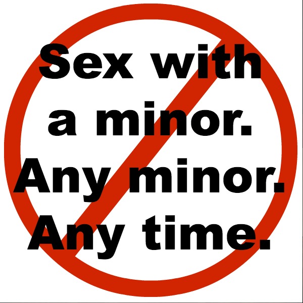 Here’s the short version: Leave the children alone. Date someone your own age or at least in the same legal and developmental demographic as you, as in adults need to date adults, not minors. I don’t care if you’re 45 and your life’s love is 25. You’re both adults. Adults: If you know me, then you know I don’t personally care if you’re straight, gay, bisexual, transgendered or still a work in progress, if you date another adult. We just have to leave the children alone when meeting our needs.