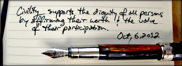 Oct. 6 ~ Civility supports the dignity of all persons by affirming their worth and the value of their participation. #civility